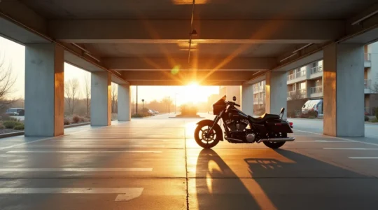 El aparcamiento ideal combina varios elementos: superficie firme y nivelada (evita que la moto vuelque con el caballete en asfalto blando o inclinado), visibilidad desde zonas transitadas, iluminación nocturna y, preferiblemente, algún elemento fijo al que anclar la moto con cadena o cable. Los garajes cerrados son la opción más segura, pero no siempre están disponibles.